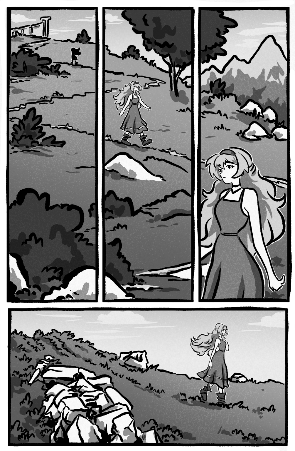 This is a silent story about a young girl on a journey to complete herself, and the trials she faces along the way. It is a "horror" comic the way the Labyrinth is a "horror" movie. 36 pages - made June 2025.